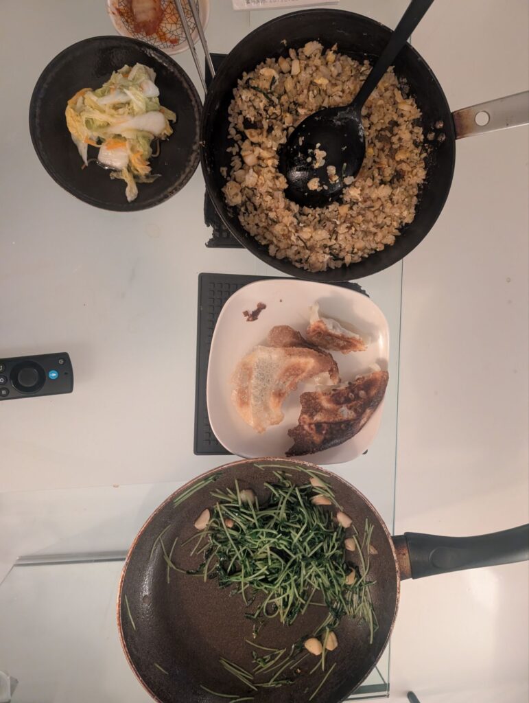 冷凍餃子を焼いただけ。