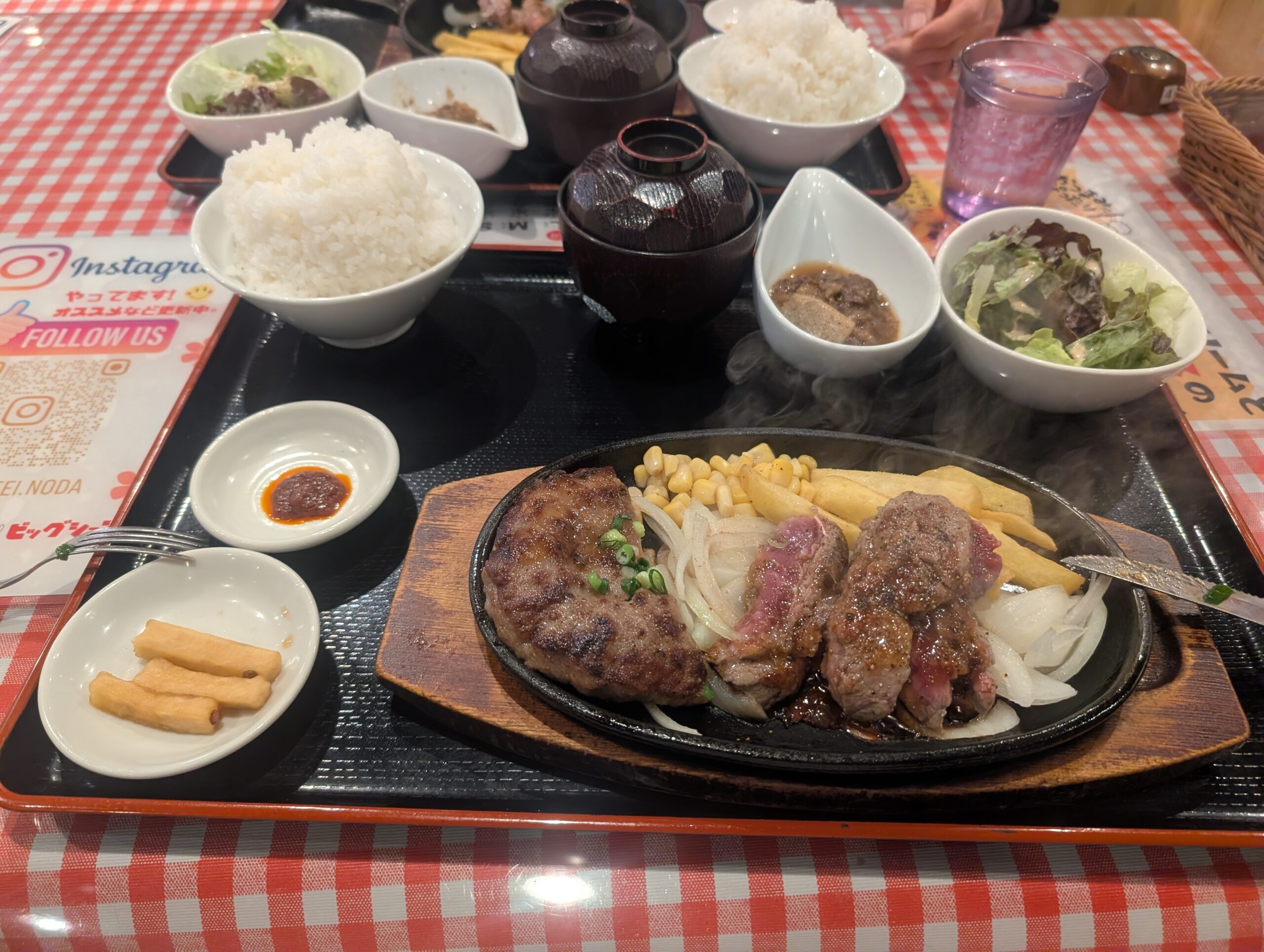 ビッグシェフ亭 野田店で、ステーキとハンバーグを母とシェアして食べました。