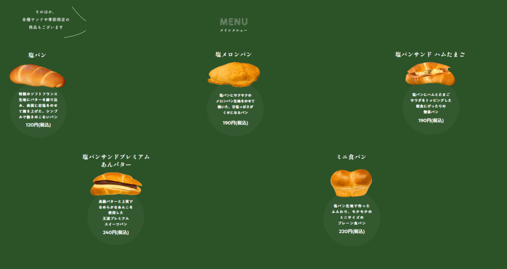 HPのメニューは上記5点ですが、私が言った際は「やきいも塩パン」が販売されてました。